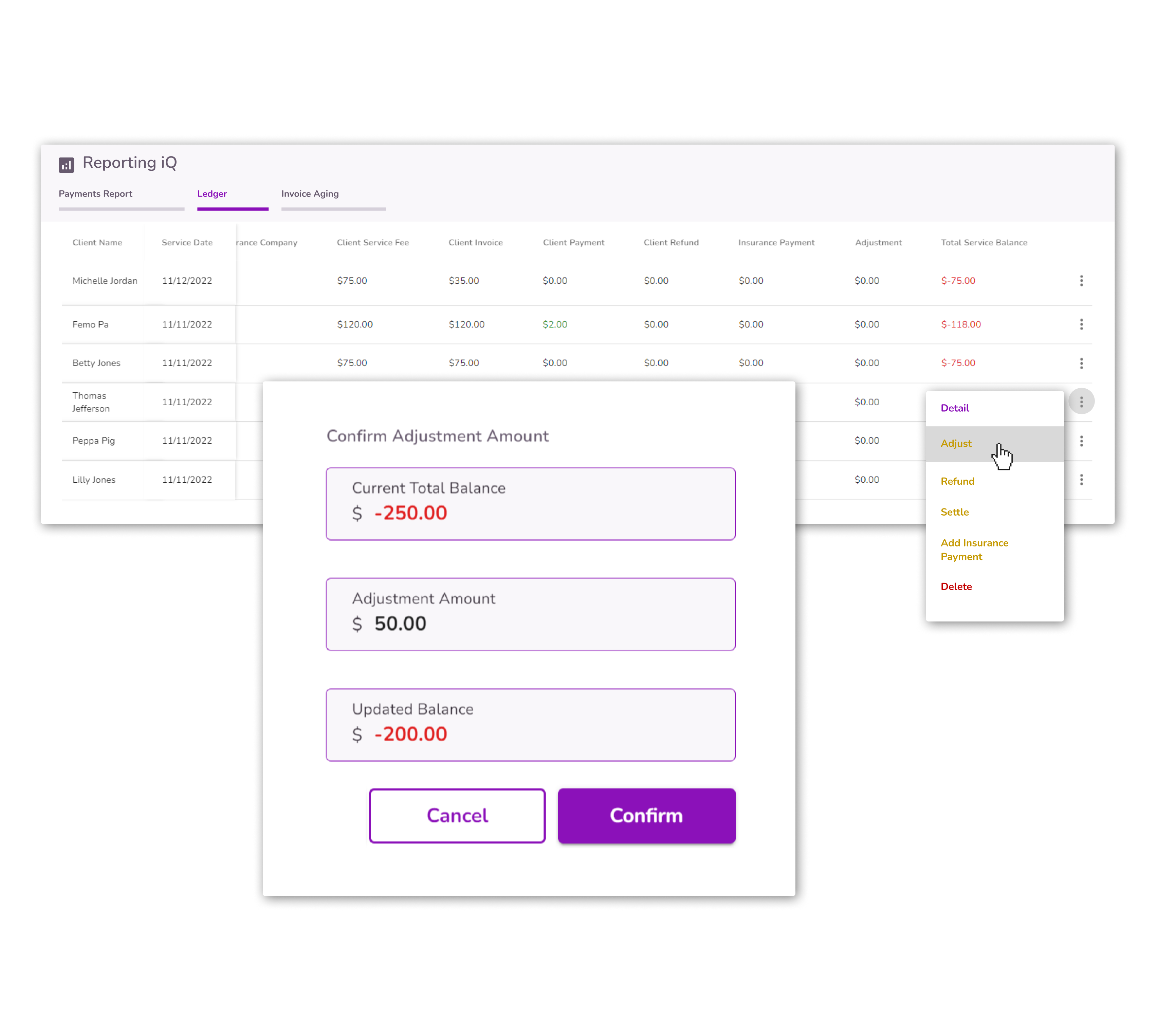 Insurance payments and contractual adjustments automatically posted to your client ledger.